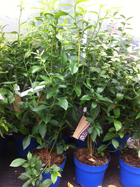 We stock rhubarb and strawberries, grapevines, raspberries, thornless blackberries, tayberries, gooseberries, blueberries, blackcurrants, whitecurrants, redcurrants and honeyberries.