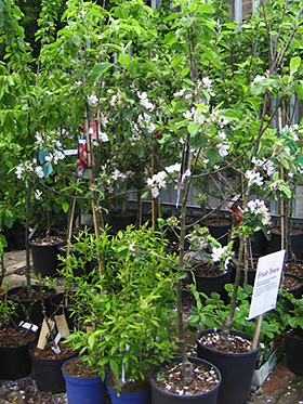 Discovery, Katy, Christmas Pippin, Greensleeves, Red Falstaff, Scrumptious and Fiesta. Available on the following root stocks: